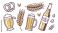 Fototapeta do Restauracji - National beer day in usa concept with beer mugs bottle wheat and pretzel celebrating brewing... #1945511763