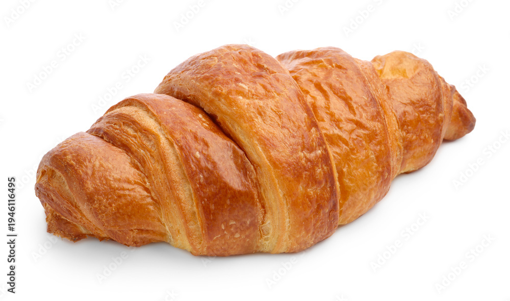Fototapeta do Restauracji - Puff pastry. One tasty fresh croissant isolated on white #1946116495