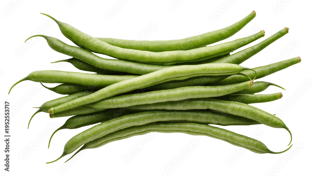 • Isolated pile of fresh green beans, raw and ready for healthy cooking and eating