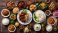 • A Table Full Of Food With A Variety Of Dishes Including Rice, Meat (A6)