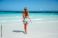 Fototapeta do Salonu Fryzjerskiego - Young blonde woman on paradise beach blue ocean sea view #229900242