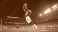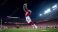 • Mid-air shot of a receiver fully extended to make a critical catch, stadium lights illuminating the scene