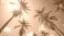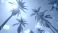 • Low angle shot of palm trees against blue sky. Sunny day in Los Angeles. Vacation in California. Tropical plants against clear skies, sunshine. Vintage style, relaxing holiday.