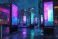 Fototapeta do Łazienki - Futuristic city plaza with glowing interactive displays #1463223244