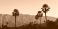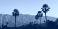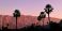 • Majestic California palm trees silhouette against towering Coachella Valley mountains, La Quinta, desert