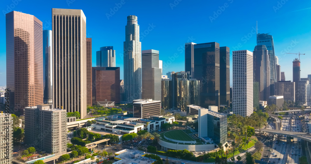 Fototapeta do Łazienki - Los Angeles city. LA downtown aerial view. Los Angeles skyline. LA streets. Los Angeles from a... #1559254139