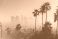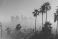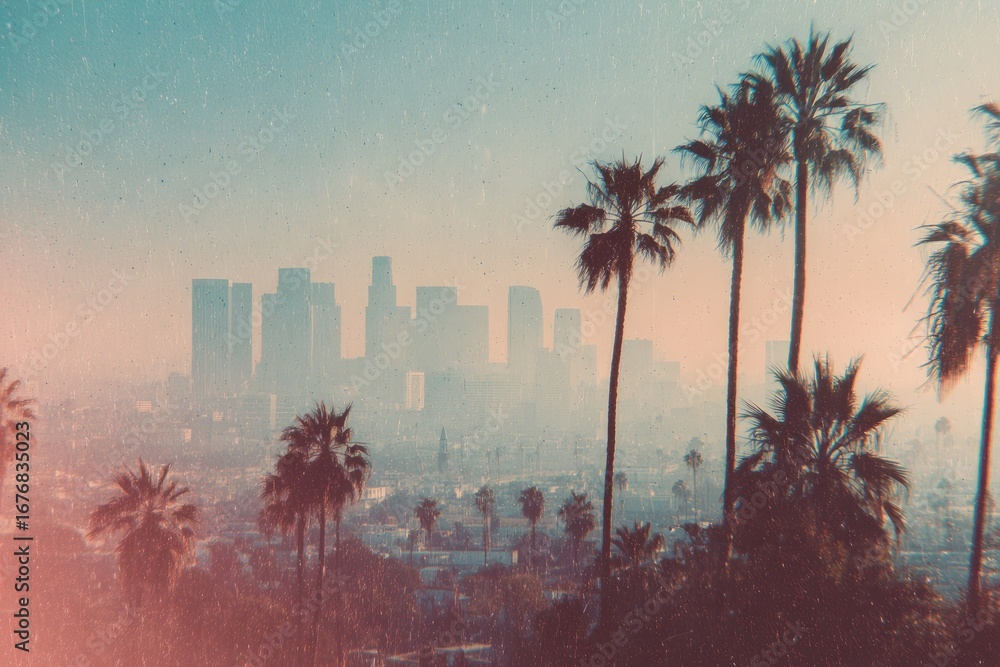 Fototapeta do Łazienki - Palm trees frame a hazy Los Angeles skyline #1676835023