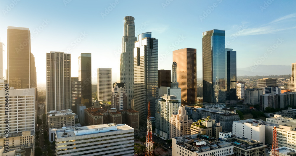 Fototapeta do Łazienki - Modern cityscape of Los Angeles, California. Drone view of Los Angeles. Panoramic photo of... #1778665766