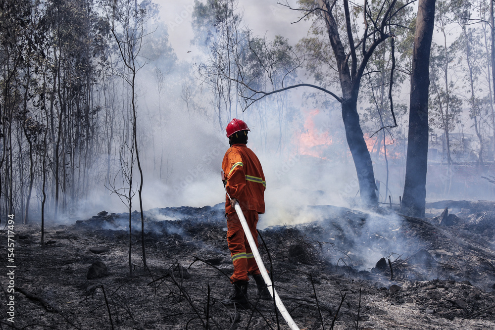 Fototapeta do Łazienki - Firefighter battle a wildfire because climate change and global warming is a driver of global... #545717494