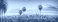 • Los Angeles skyline with palm trees in the foreground