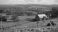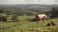 • A rural farm scene with a tractor barn and farmer tending to livestock in 1975.