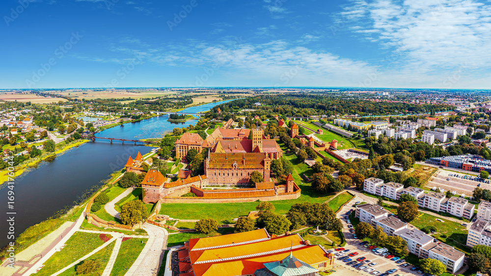Fototapeta Architektura - Widok z lotu ptaka na Malbork. #1694176044