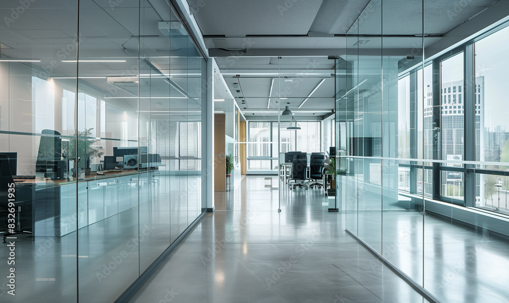 Fototapeta Architektura - Architektura ii wnętrza - biuuro z przeszklonymi ścianami, sala konferencyjna #832691935
