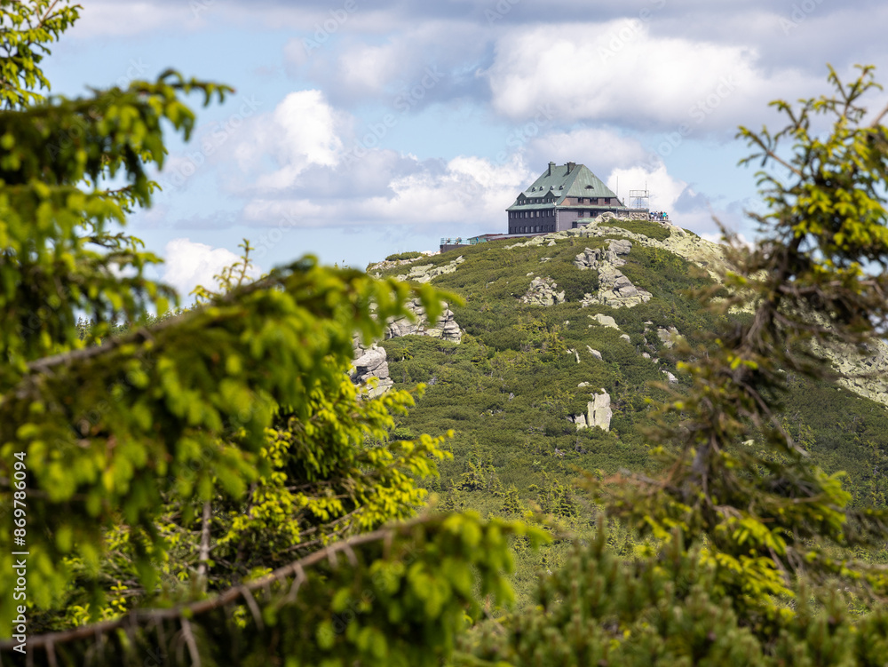 Fototapeta Architektura - Schronisko na Szrenicy – wysokogórskie schronisko turystyczne w Sudetach Zachodnich, w paśmie... #869786094