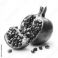 • A single ripe pomegranate with seeds, isolated on a white background, emphasizing a unique fruit