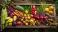 • Fresh organic harvest autumn vegetables fruits abundant colorful garden bounty wooden crate farm fresh