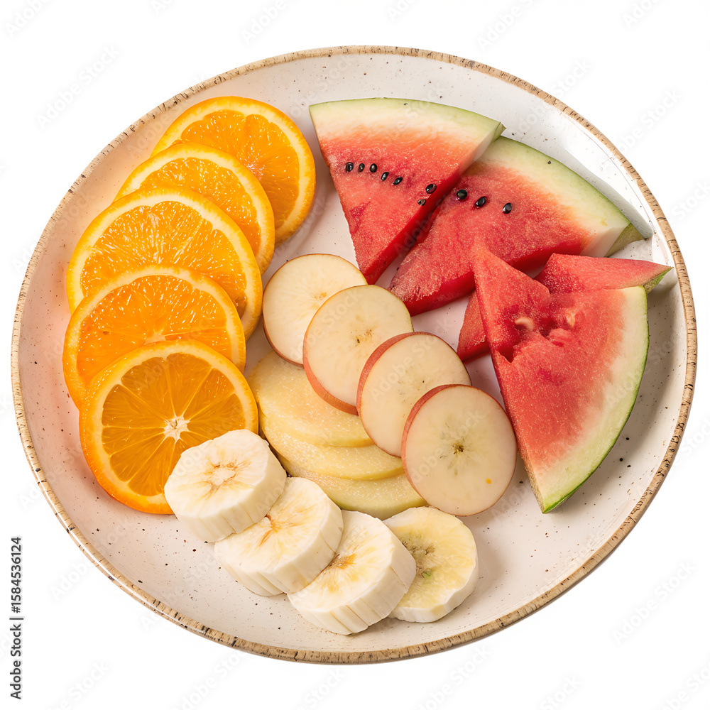 Fototapeta Jedzenie i Napoje - Orange watermelon apple banana slices on plate fruit #1584536124