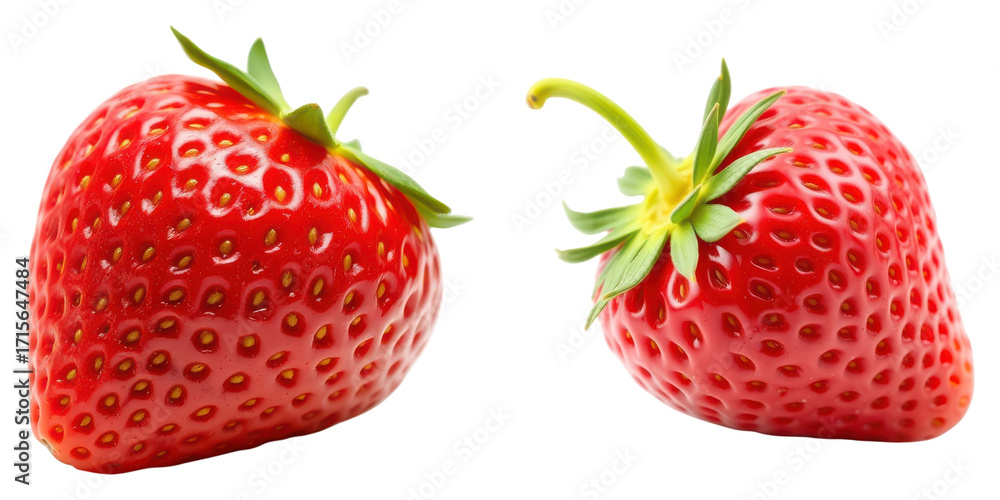 • Two vibrant ripe strawberries showing off their vibrant colors, isolated on transparent background