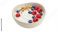 • Bowl of yogurt with granola, raspberries, and blueberries isolated, healthy breakfast with fresh fruit and crunchy toppings
