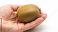 • Fresh kiwi fruit held in hand with plain white background, tropical healthy food concept.