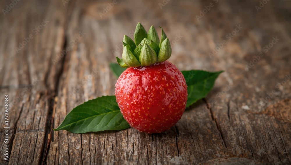 • Litchi fruit with green leaf on rustic wood surface, isolated healthy food