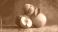 • Classic still life of fruit on blue backdrop in abstract paint style
