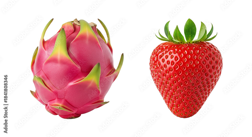 Fototapeta Jedzenie i Napoje - dragon fruit and strawberry isolated PNG #1841808346