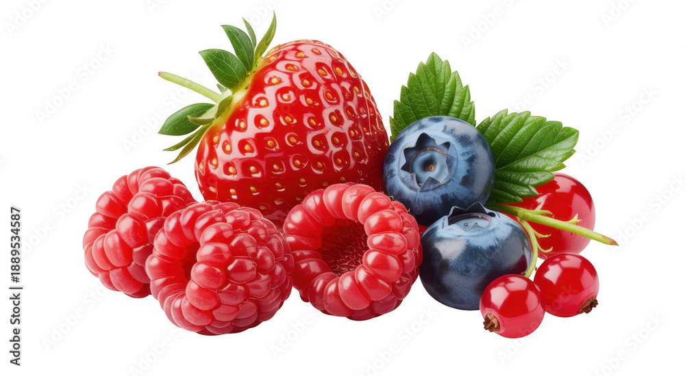 • Assorted Berries and Fruits strawberry isolated on a transparent background