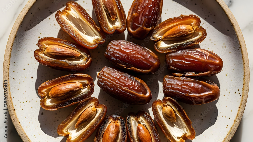 Fototapeta Jedzenie i Napoje - Plate of fresh dates #1890339410