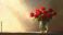 • Szklany wazon z bukietem żywych czerwonych róż, oświetlony łagodnym słońcem, emanuje zaproszeniem i ciepłem