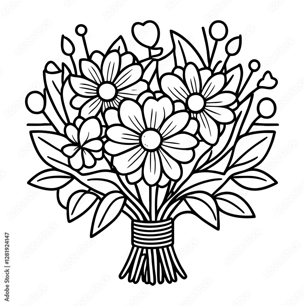 Fototapeta Kwiaty - Bukiet kwiaty kolorowanka #1281924147