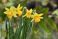 • Narcyzy botaniczne (Narcissus) odmiany "Jetfire" w kroplach deszczu