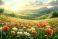 • wiosna, łąka, zielona trawa, kwiaty polne, stokrotki, tulipany, maki, natura, przyroda, promienie słońca, sielanka, spokój, harmonia, wolność, świeże powietrze, błękitne niebo, przestrzeń, wiejski kra