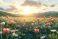 Fototapeta Kwiaty - wiosna, łąka, zielona trawa, kwiaty polne, stokrotki, tulipany, maki, natura, przyroda, promienie... #1359554999