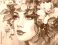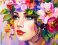 • Portret młodej, pięknej kobiety z kwiatami na głowie. Obraz, sztuka