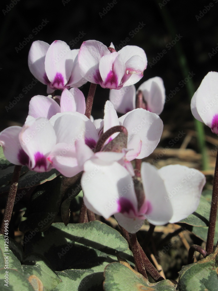 Fototapeta Kwiaty - Zbliżenie na jasnoróżowe kwiaty rośliny z gatunku cyclamen #1725749985