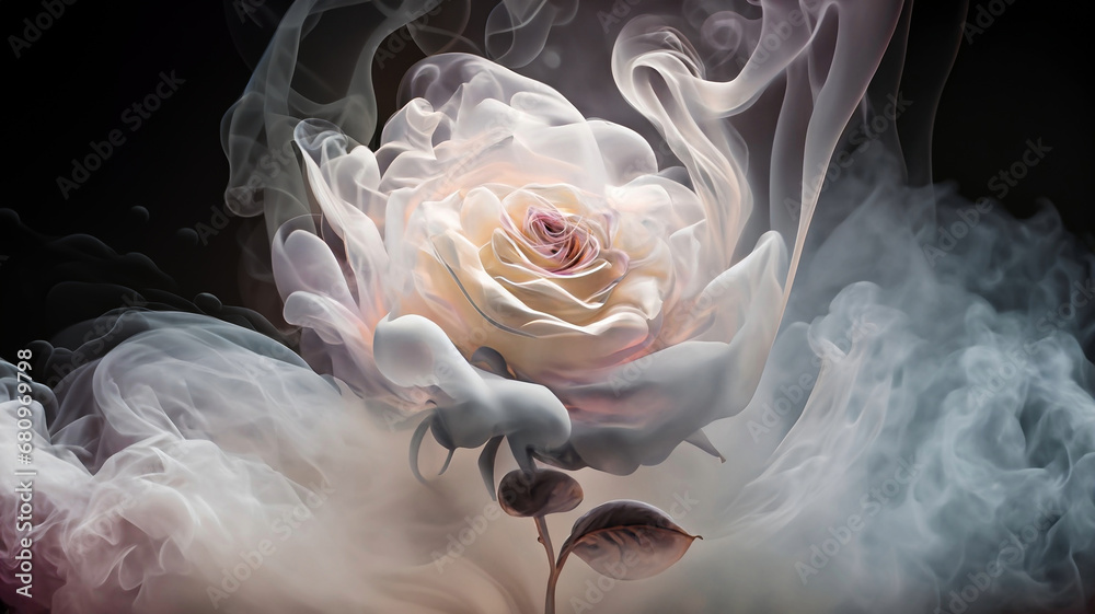 Fototapeta Kwiaty - Róża, piekny pastelowy biały kwiat w dymie, abstrakcyjna tapeta #680969798