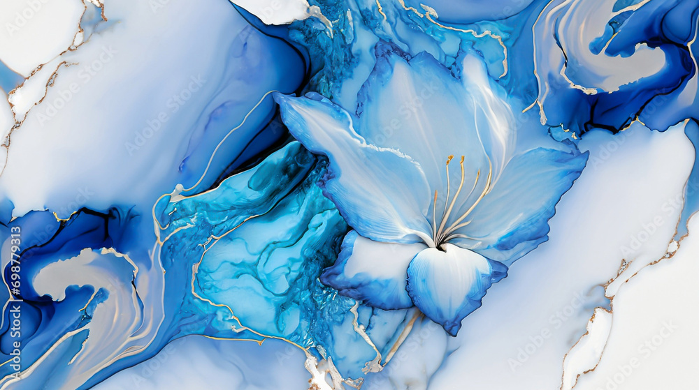 Fototapeta Kwiaty - Tapeta ,niebieski kwiat marmur. Pastelowe tło #698779313