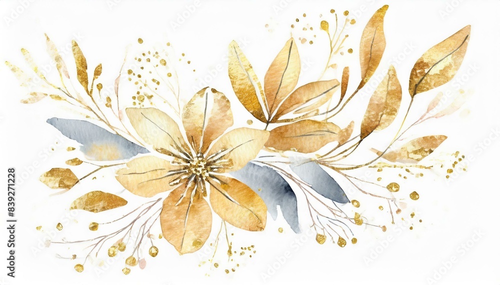 Fototapeta Kwiaty - Złote kwiaty dekoracyjne vintage #839271228