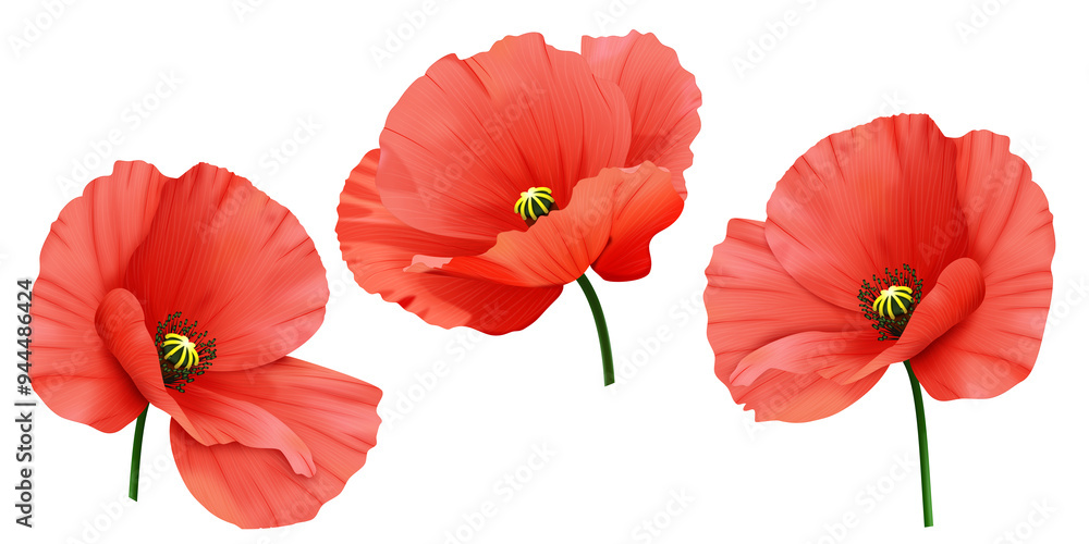 Fototapeta Kwiaty - Czerwone mak - letnie polne kwiaty. Ręcznie rysowana botaniczna ilustracja. #944486424