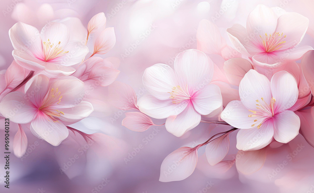 Fototapeta Kwiaty - Tapeta, rózowe kwiaty wiśni. Pastelowy róż, wiosenne, dekoracyjne #969040123