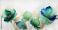 • Motyw kwiatowy, abstrakcyjny wzór. Zielone i niebieskie kwiaty na białym tle