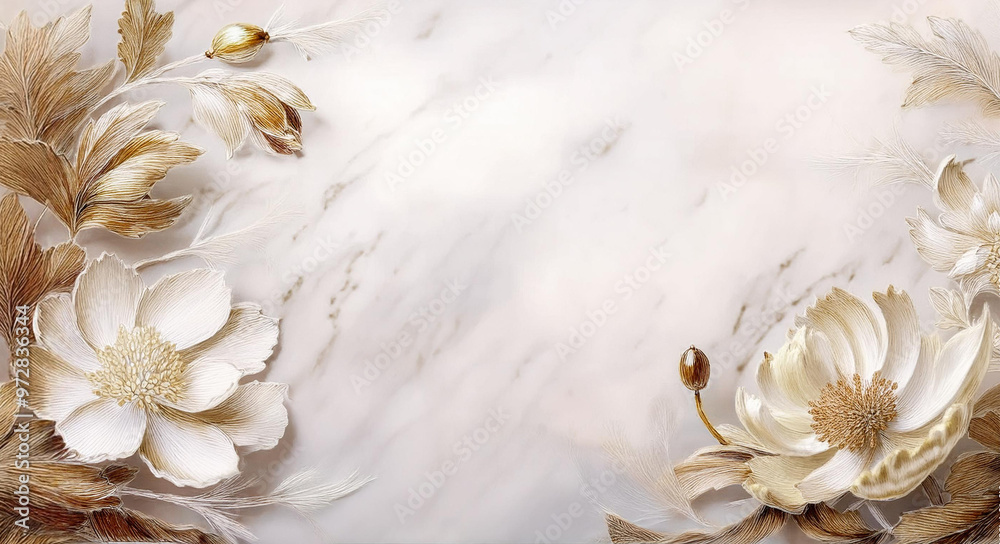 Fototapeta Kwiaty - Białe kwiaty na marmurowym tle. Tło ślubne #972836344