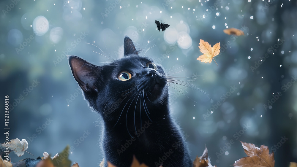 • Enchanting Black Cat in a Magical Autumn mystery and wonder