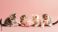 Fototapeta Koty - Four adorable kittens play with a ball of yarn. #1093807520