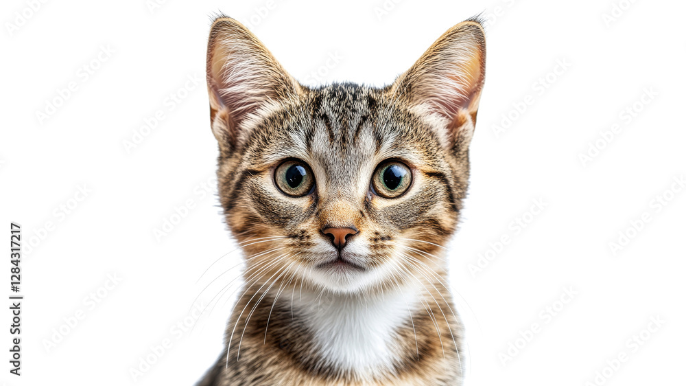 Fototapeta Koty - Playful tabby cat with big curious eyes closeup #1284317217
