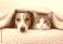 Fototapeta Koty - A cute dog and cat snuggled together under a cozy blanket #1617692782
