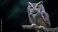 Fototapeta Koty - A long-eared owl perched on a branch against a dark background. #1668655631