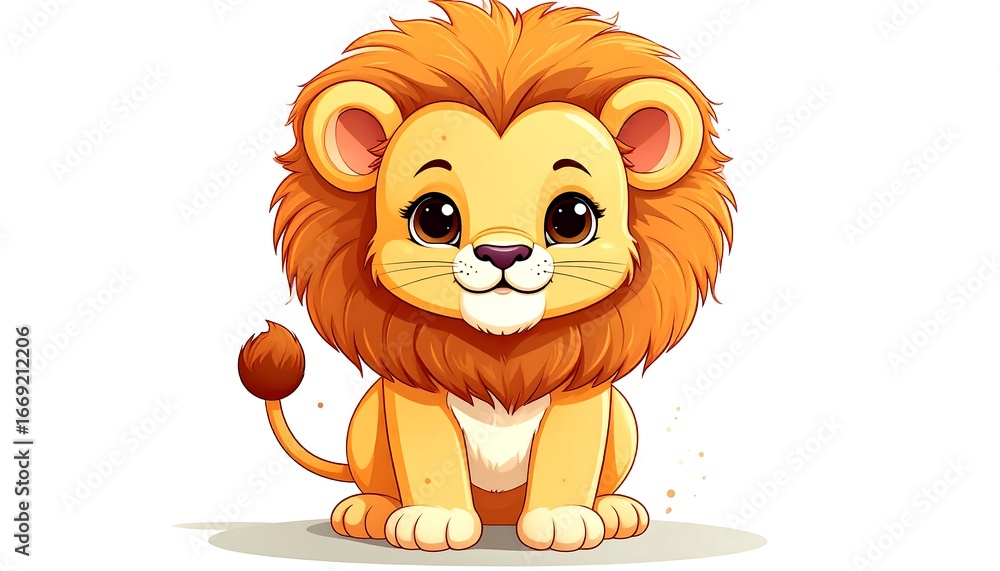 • Cute Cartoon Lion Cub Sitting, White Background (1)