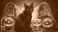 Fototapeta Koty - Black Cat with Green Eyes Halloween Portrait #1676506081